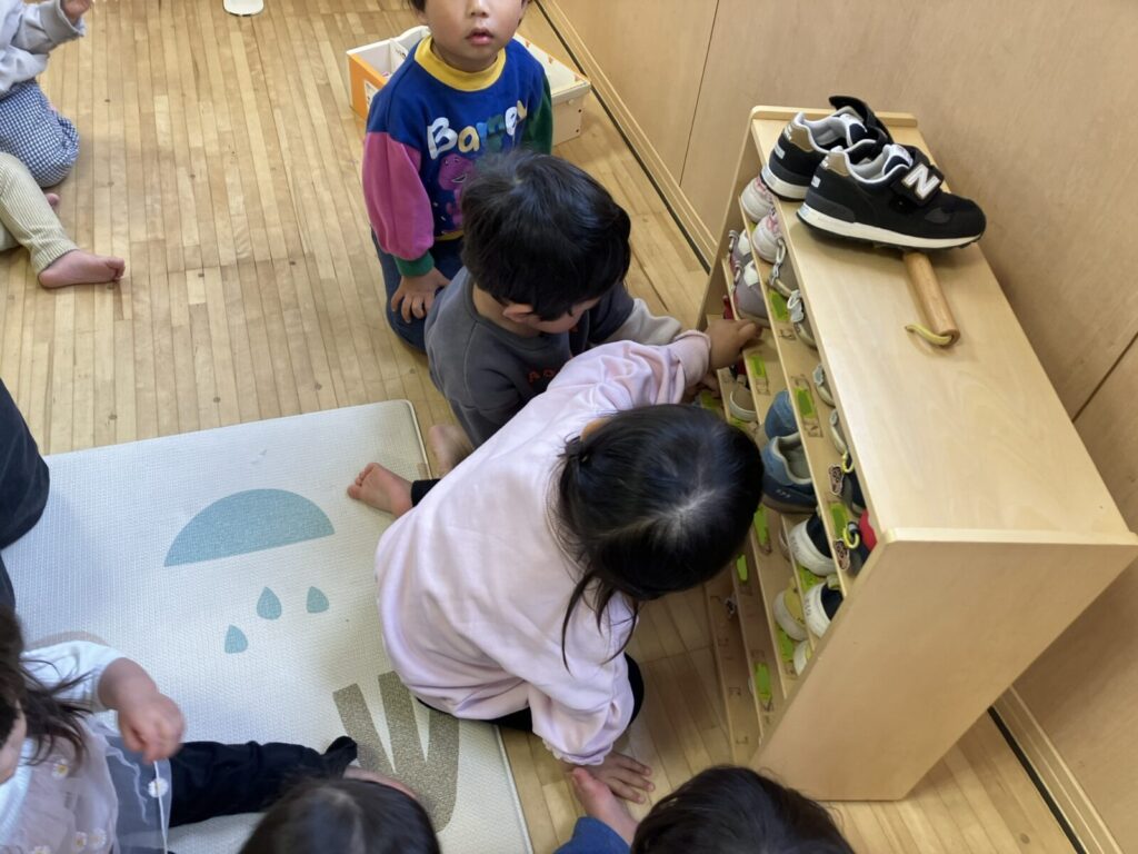 靴箱の名前シールも自分で取りました。次のピアノさんにバトンタッチ!きれいになった靴箱、喜んでくれるといいな~
