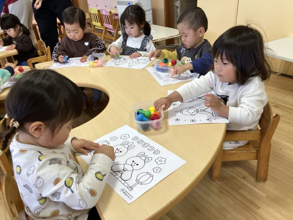 色塗りにもチャレンジ!!好きな色を選んで、よく見てぬ~りぬり♪
