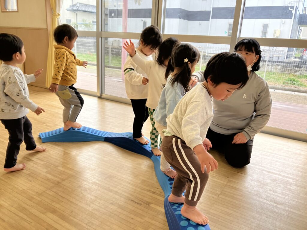 平均台はゆっくりゆっくり落ちないように・・・自分で考えて渡っているね。
