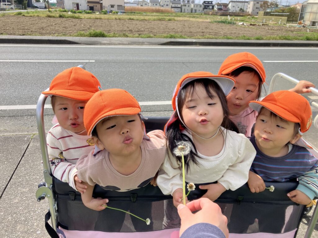 散歩中にたんぽぽの綿毛をみ~つけた!みんなでフゥ~ッ