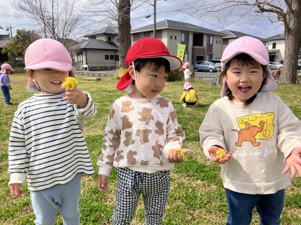3月になり、ぽかぽかいいお天気になりました♪ピッコロさんの春探しは、てんとう虫やダンゴムシ、ちょうちょ、たんぽぽ、つくしんぼなど、たくさん生き物や草花を見つけてとても嬉しそう🌼お散歩道では、お友達と手を繋いで歩くことも上手になり、またひとつ、成長した姿を見る事が出来ました。