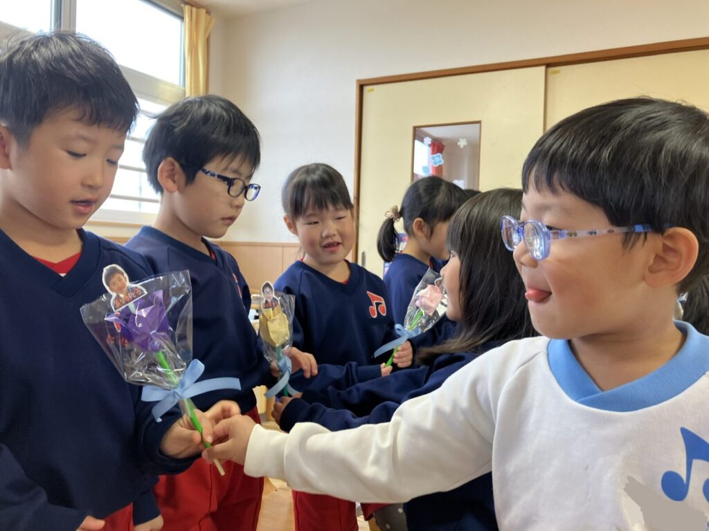 渡すときに、「いつも一緒に遊んでくれてありがとう♡」「小学校でも頑張ってね!」など、自分の気持ちを恥ずかしがりながらも、言葉で伝える事が出来ました🥰💕
