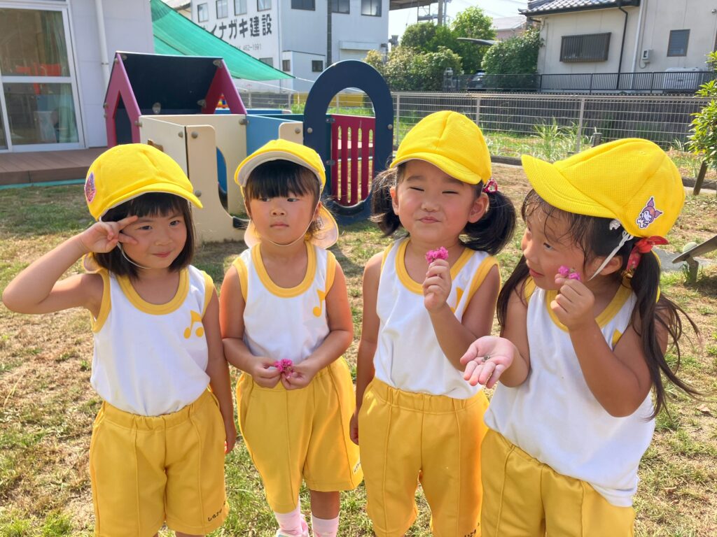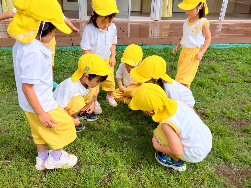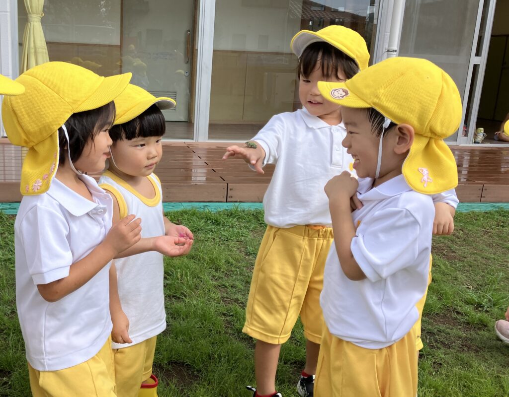 園庭に出ると、たくさん汗をかいて遊ぶチェロさん。カエル🐸や蝶々🦋、お花に興味を持ち「先生見つけたよ~!」と嬉しそうに教えてくれます💛