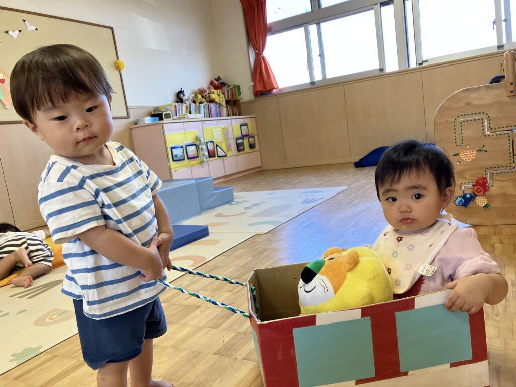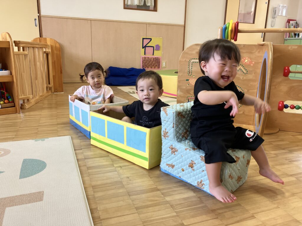 お部屋では段ボール電車が大人気✨電車に乗って行ってきまーす!と手を振る姿も可愛かったです💓