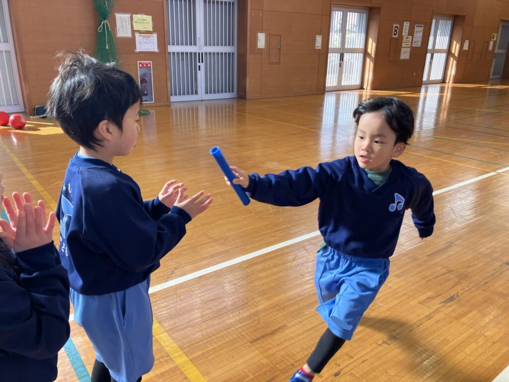 「どうしたら早く走れるかな?」と聞くと、「腕をたくさん振ったらどうかな?」と自分の考えを話してくれる子もいましたよ😊💕