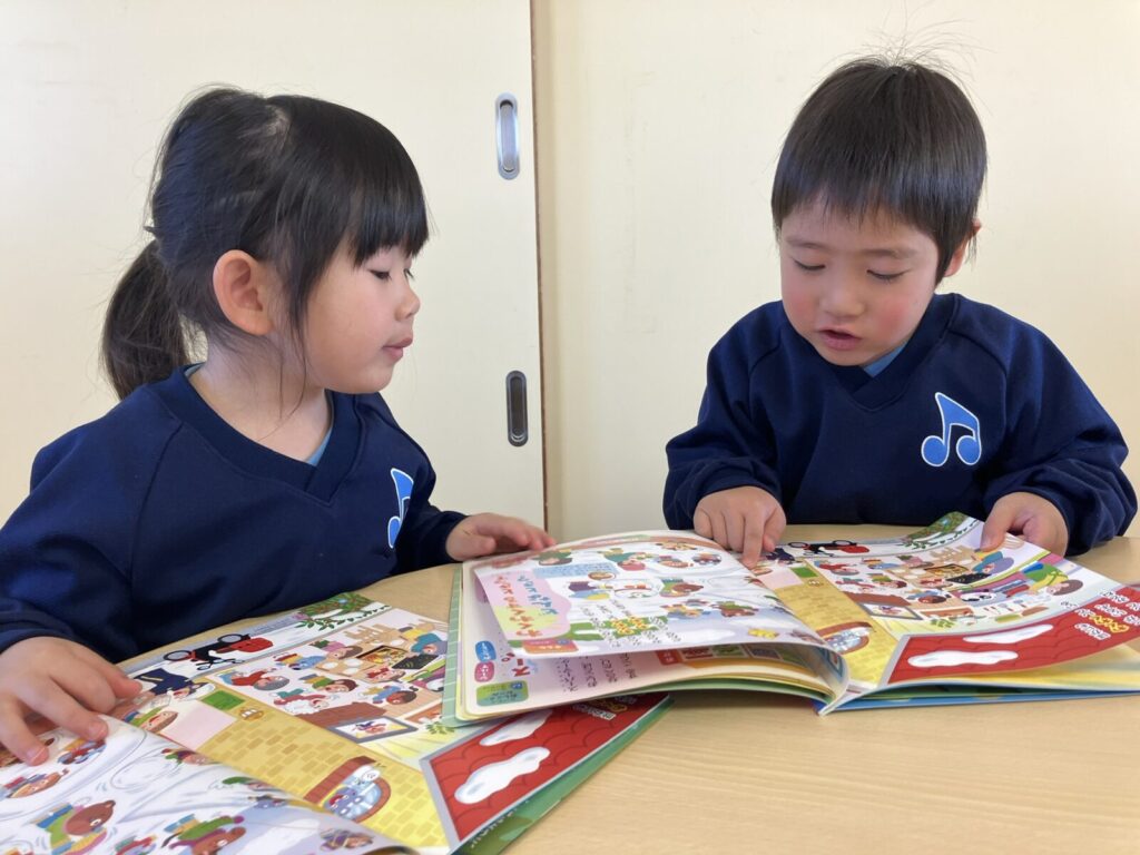 絵本を見ながら、「この子はどうしてワクワクしてるのかな?」と友達と一緒に話をしていました!