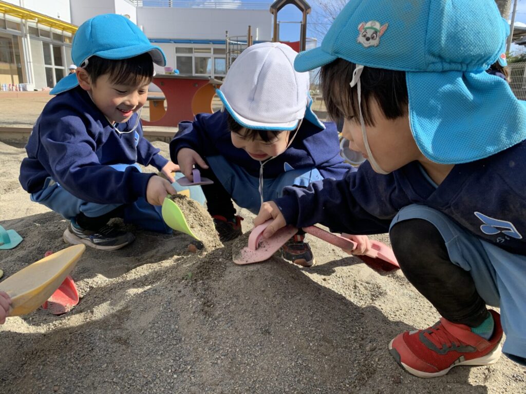 自分たちで、「砂をかける・優しく土を抑えて固める」と役割を分担し協力して作る姿が見られ成長を感じました😢💕